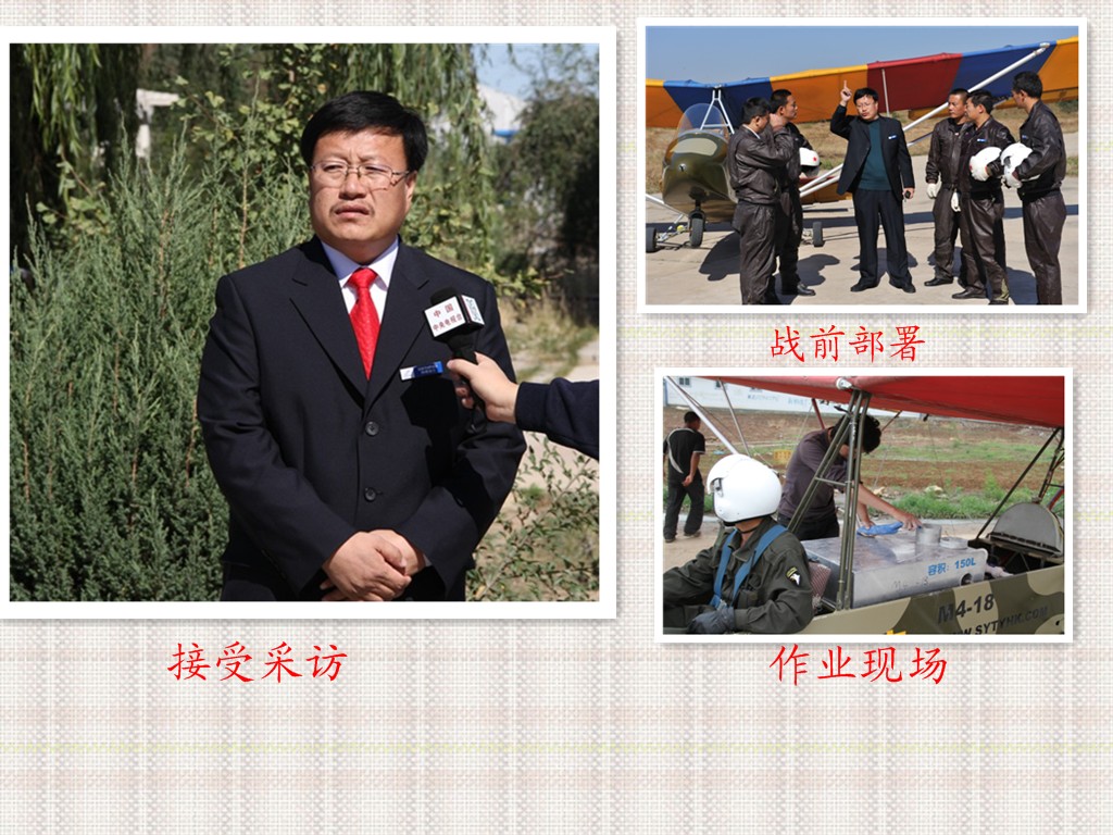 ,而是毅然決然的走上里一條充滿(mǎn)艱辛的打拼之路,在別人笑之為天方夜譚的情況下,1999年四處投親靠友籌集資金從北京航空航天大學(xué)購(gòu)進(jìn)了一架蜜蜂4超輕型飛機(jī),與此同時(shí)它成就了內(nèi)蒙古自治區(qū)第一個(gè)私人擁有飛機(jī)的人,飛機(jī)有了,他東奔西走,開(kāi)始學(xué)習(xí)、探索、研究制作超輕飛機(jī)飛機(jī)播種和飛機(jī)滅蟲(chóng)設(shè)備,經(jīng)過(guò)4年的反復(fù)試驗(yàn),終于在2003年設(shè)備試驗(yàn)成功,但沒(méi)有相關(guān)手續(xù)私人飛機(jī)不允許私自飛行,于是成立航空公司的想法在心中勾畫(huà),他開(kāi)始了中國(guó)第一家超輕型飛機(jī)通用航空公司的籌建工作,一己之力不可成江河,于是他伙同一直支持他的妻子四處請(qǐng)專(zhuān)家、找能人,終于在2006年經(jīng)過(guò)三年努力國(guó)家民航華北地區(qū)管理局為其頒發(fā)了通用航空公司籌建許可證,于是他又四處籌措資金,投入到籌建工作之中,2008年六月經(jīng)民航華北地區(qū)管理局驗(yàn)收合格并頒發(fā)通用航空運(yùn)營(yíng)許可,與此同時(shí)他的飛機(jī)播種、飛防滅蟲(chóng)兩項(xiàng)實(shí)用新型專(zhuān)利獲得通過(guò),國(guó)家知識(shí)產(chǎn)權(quán)局頒發(fā)了實(shí)用新型知識(shí)產(chǎn)權(quán)證書(shū)。(鏡頭七)設(shè)備特寫(xiě)(包括專(zhuān)利證書(shū))邱志剛一個(gè)不屈不撓的東北漢子,在平凡的人生道路上創(chuàng)造了不平凡的業(yè)績(jī),創(chuàng)造了不平凡的人生價(jià)值。創(chuàng)造了人生的豪邁與神奇。