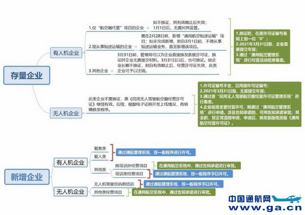 A6:此類情形適用《通用航空經(jīng)營許可管理規(guī)定》有關(guān) 規(guī)定。企業(yè)需通過“通用航空管理系統(tǒng)”提出申請(qǐng),按照申 領(lǐng)或變更通用航空經(jīng)營許可證的有關(guān)程序辦理。其中,存量 無人機(jī)企業(yè)在取得新版《通用航空經(jīng)營許可證》的同時(shí),其 原持有的《民用無人駕駛航空器經(jīng)營許可證》自動(dòng)失效(許可證編號(hào)參見 Q2/A2)。