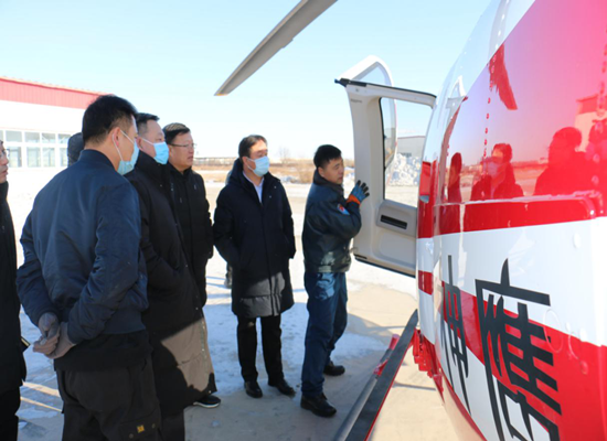 青格樂圖書記和宋建中局長詳細了解了神鷹航空過去一年建設和發(fā)展情況,還重點調研了企業(yè)在空中應急救援能力建設情況。董事長邱志剛向各位領導詳細介紹了目前企業(yè)開展空中應急救援的主要機型和設備、參加的應急救援行動及各種演練,以及已開展和正在開展的各項業(yè)務。