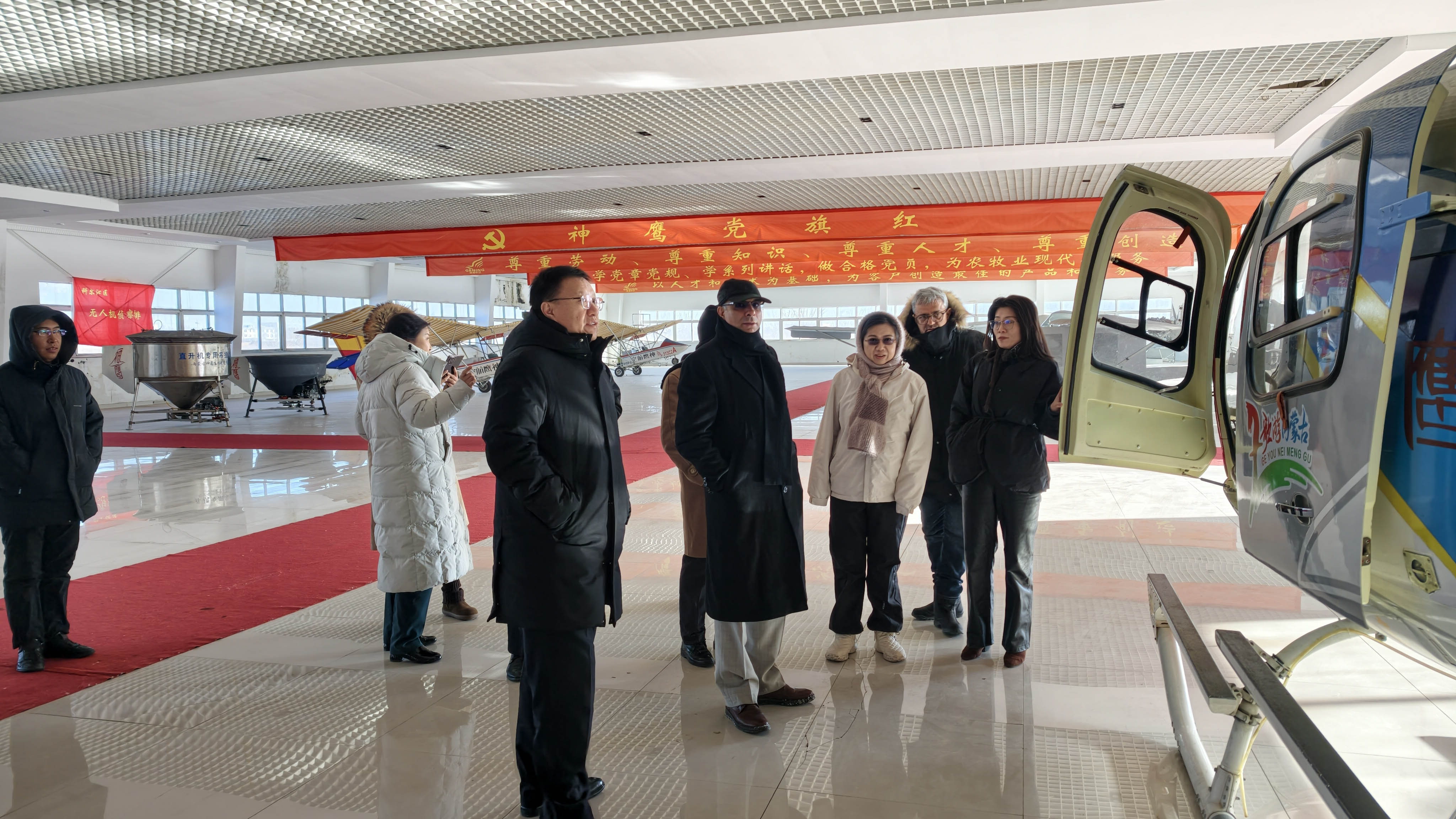 當天上午,納辛航空董事長阿巴西?阿米尼一行到訪內(nèi)蒙古神鷹航空集團總部。在神鷹航空集團董事長邱志剛、總經(jīng)理孫學(xué)慧及公司核心管理人員的陪同下,參觀了公司飛機展廳與文化墻,并觀看了企業(yè)宣傳片,深入了解神鷹航空的發(fā)展歷程、企業(yè)實力與業(yè)務(wù)布局。