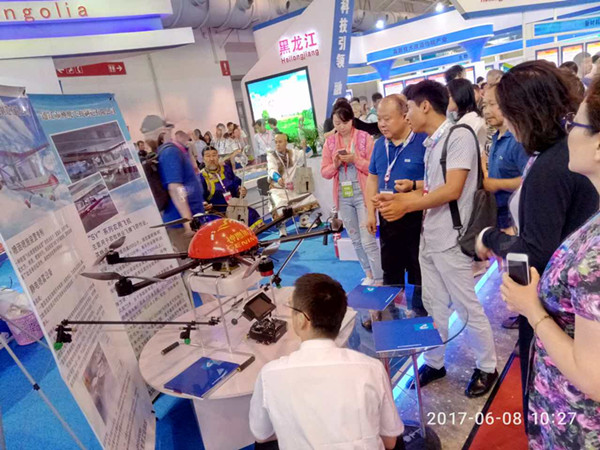 在此次展會(huì)上,通遼市神鷹飛機(jī)制造有限公司自主研發(fā)的“SY-200”農(nóng)用飛機(jī)倍受與會(huì)人員關(guān)注,尤其是一些國外客商對該款飛機(jī)產(chǎn)品產(chǎn)生了濃厚興趣。“SY-200”農(nóng)用飛機(jī)是通遼市神鷹飛機(jī)制造有限公司組織科研團(tuán)隊(duì),經(jīng)過幾年刻苦鉆研的新一代輕型農(nóng)用飛機(jī),年生產(chǎn)能力300余架,主要用于農(nóng)、林作物病蟲害防治、肥料噴施;草原滅鼠滅蝗;沙漠飛播造林、航空拍攝;航空測繪;飛行訓(xùn)練等,其中農(nóng)林作業(yè)效果尤為顯著。此次參展的農(nóng)用植保無人機(jī)作為該公司自主研發(fā)的新一代植保無人機(jī),已通過國家植保機(jī)械質(zhì)量監(jiān)督檢驗(yàn)中心的質(zhì)量檢驗(yàn),年生產(chǎn)能力2000余架,具有安全主、高效、精準(zhǔn)等特點(diǎn),該款產(chǎn)品也極大地吸引了參觀者的眼球,內(nèi)蒙古自治區(qū)白向群副主席也親臨展位參觀指導(dǎo),并與工作人員親切交流。參展期間,通遼市神鷹飛機(jī)制造有限公司已與多家企業(yè)和單位達(dá)成生產(chǎn)合作意向。